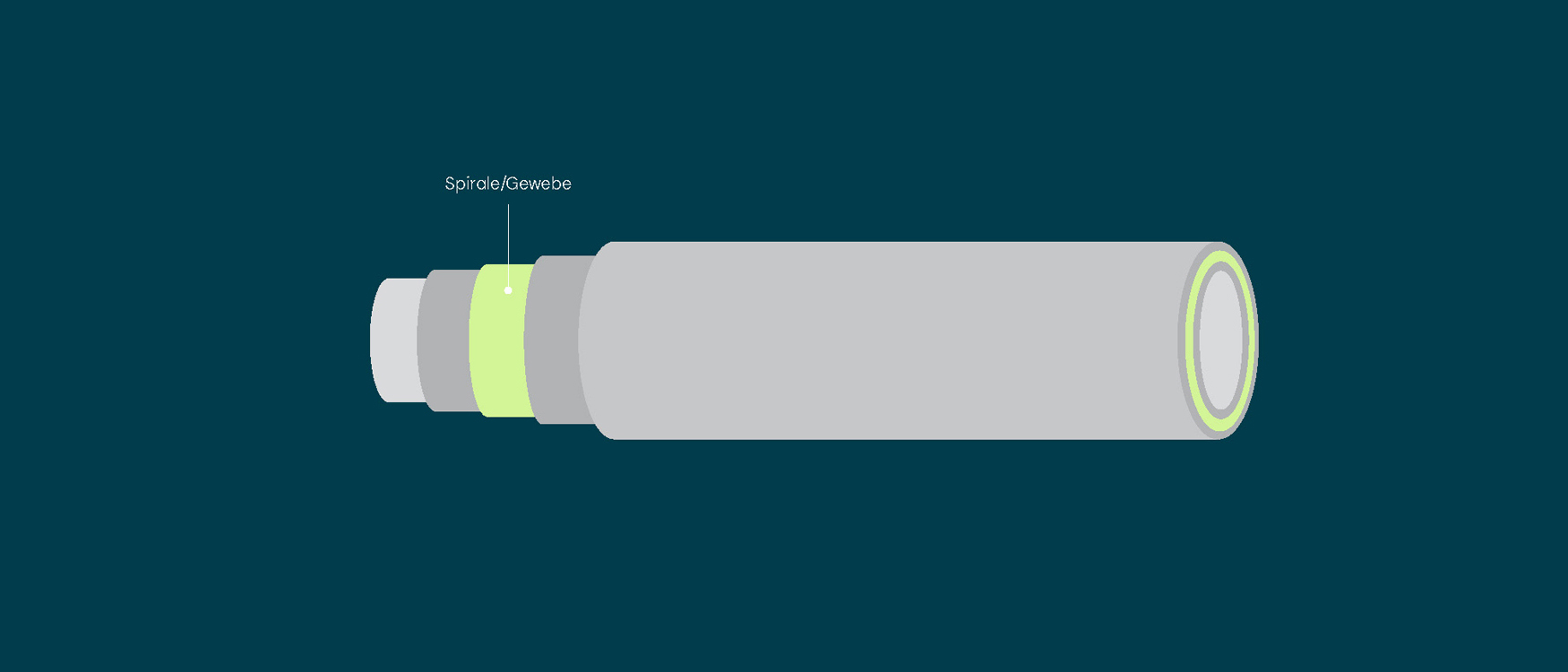 Ein Schlauch besteht aus vier Hauptkomponenten: dem Lumen, der Auskleidung, der Spirale und der Ummantelung. Jede dieser vier Schichten erfüllt eine eigene Funktion und ist für die Gesamtfunktionalität des Schlauchsystems unverzichtbar.